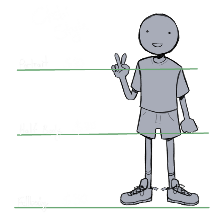 I will send progresses throughout the sketch progress, and you are free to make changes in that period! After we decide on a finished sketch, I will not do any significant changes! (This does not mean you cannot ask for changes to the colors or shading I decide on <)